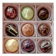 В коробочке 9 трюфелей рандомно-разных вкусов: